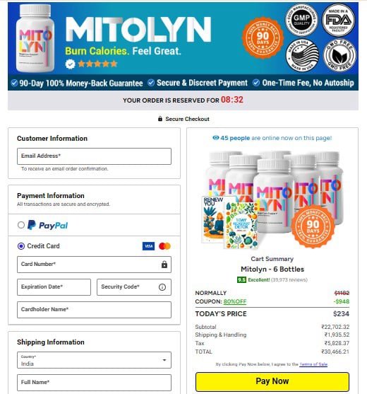 Once you have clicked the "Buy Now" button that is right below this test, you will be taken to the secure checkout page. Just enter your information, and you will then be given instant access to the entire Mitolyn Supplement